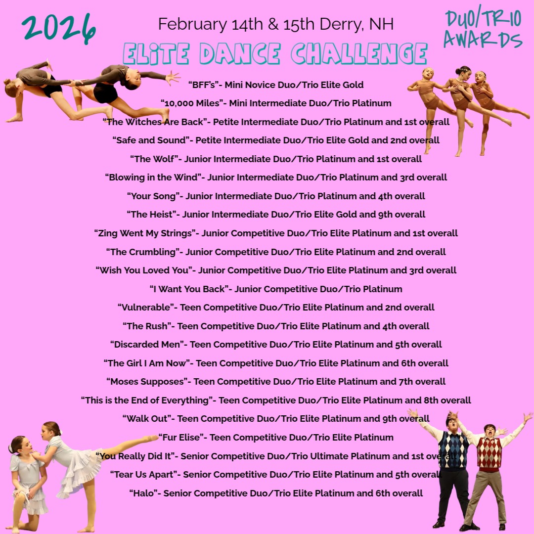 Lakes Region Dance’s Competition Team consists of over 50 dancers who compete in four regional competitions February-May each year. Our team also attends nationals every other year. Dancers compete in styles such as ballet, tap, jazz, contemporary, pointe, hip hop and acro. We have over 80 routines that consist of solos, duos, trios, and groups! Our team has been awarded the “Top Scoring Dance Studio” from Dancers Inc., overall high scores, choreography awards, studio of excellence awards and so much more!!